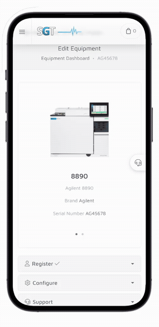If your equipment does not come with a QR code sticker, you can print out the QR Code generated during the registration and paste it on your instrument for quick access to the status of your equipment's consumables.