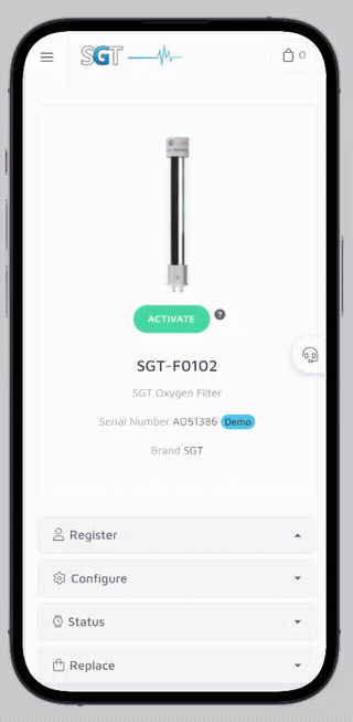 Activate a consumable by scanning the QR Code on the consumable and clicking the 'Activate' button. Clicking the 'activate' button will use the current date as the installation date. If you would like to set a different installation date, or set additional properties that can affect the standard lifetime of the consumable you can consider configuring the consumable.